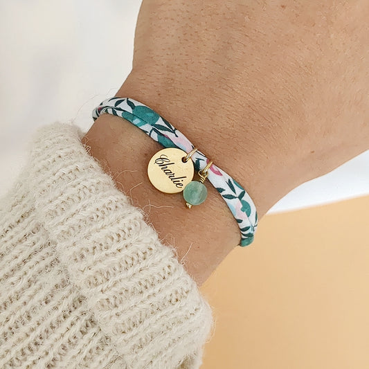 Bracelet personnalisé en Liberty avec pierre naturelle