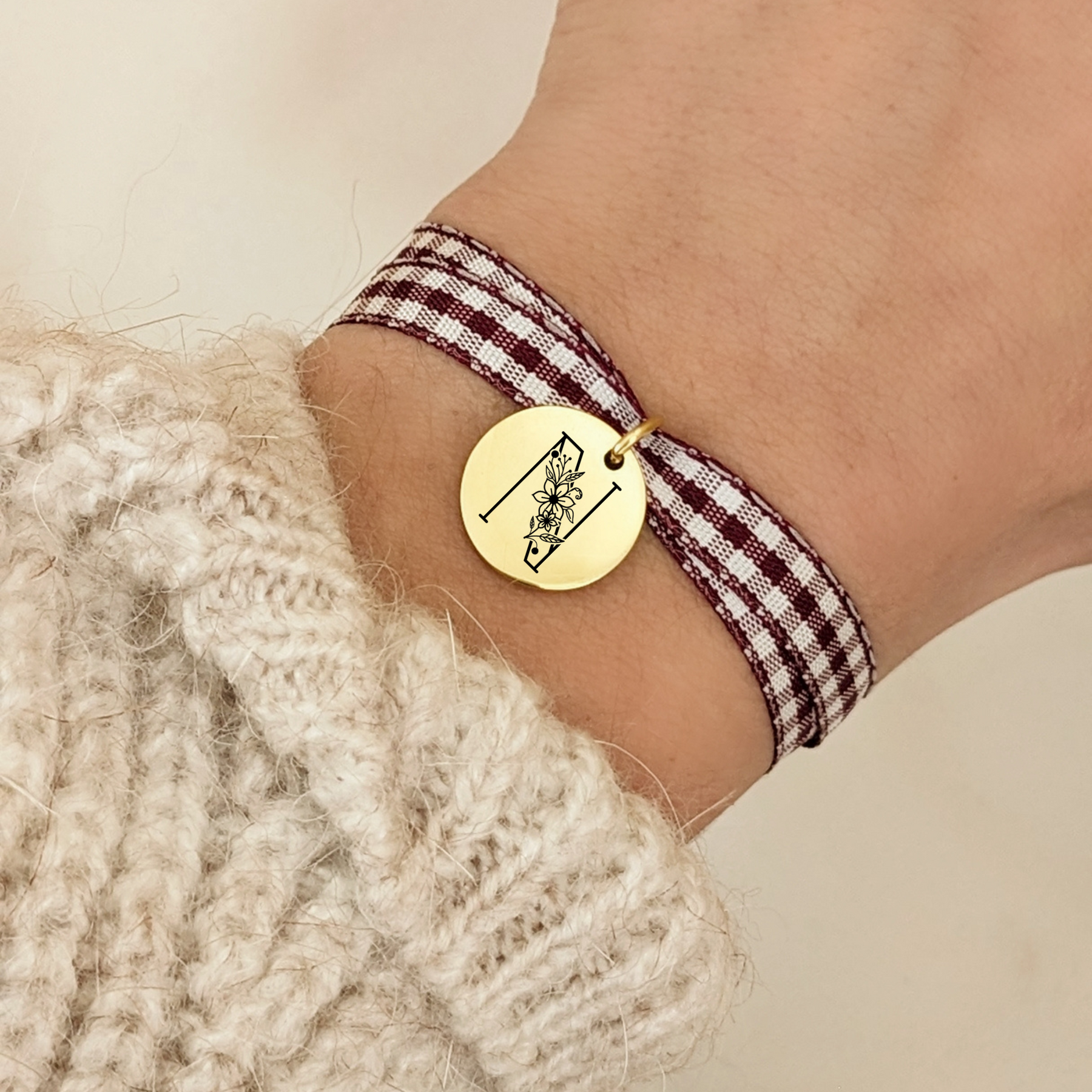 • Bracelet réglable en ruban vichy