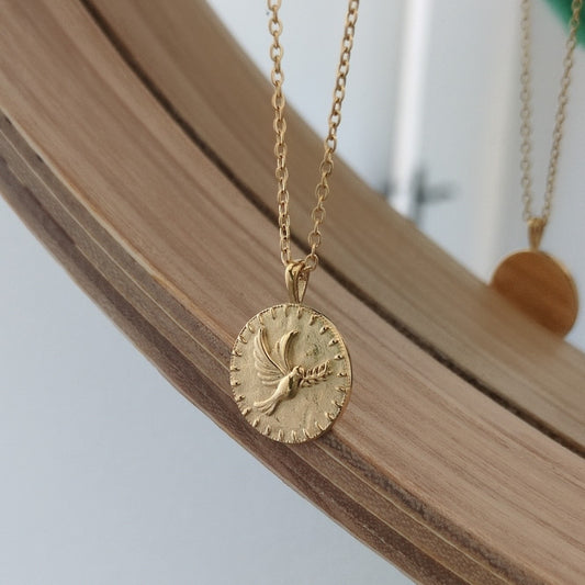 Collier personnalisé femme avec colombe gravée - Bijoux acier inoxydable