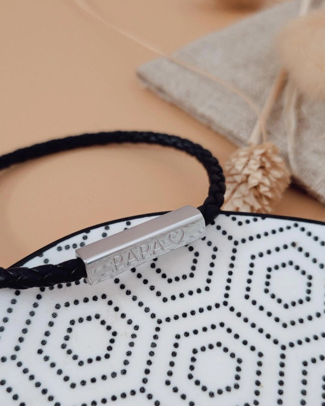 Bracelet papa en cuir pour homme – Bijou gravé prêt à offrir
