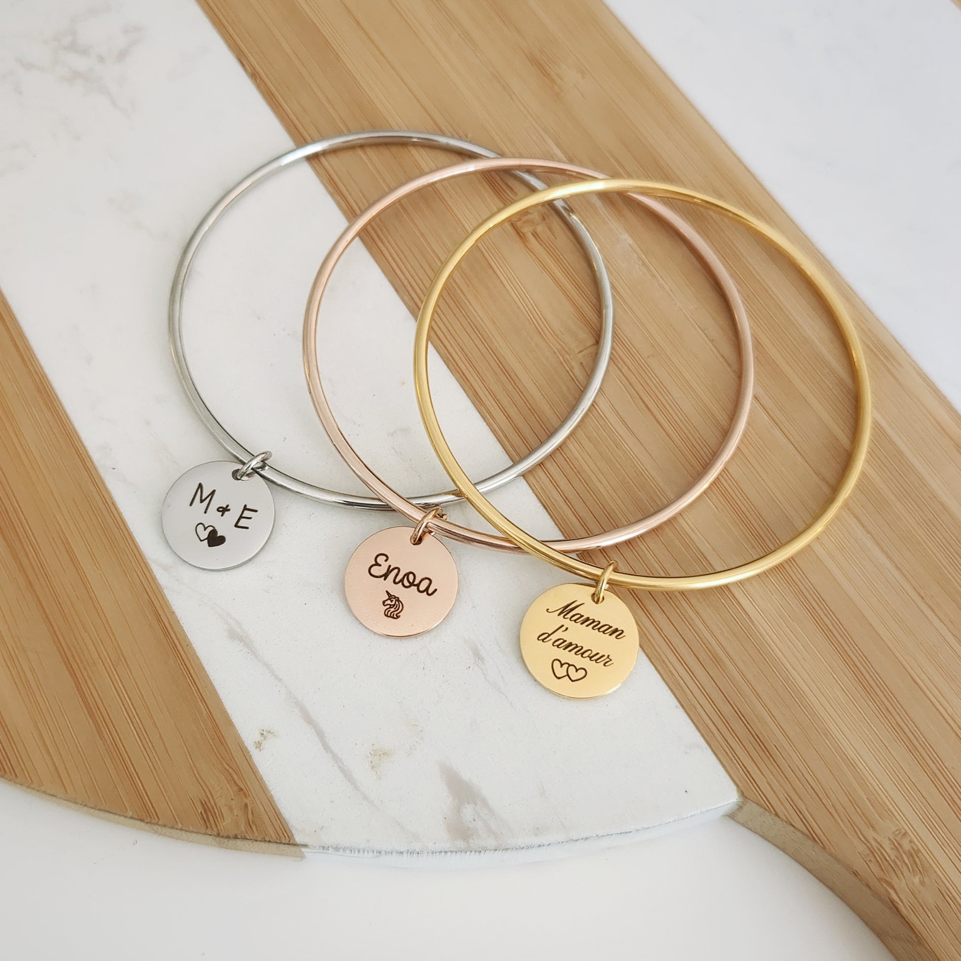 • Bracelet jonc en acier inoxydable argenté, doré ou or rose