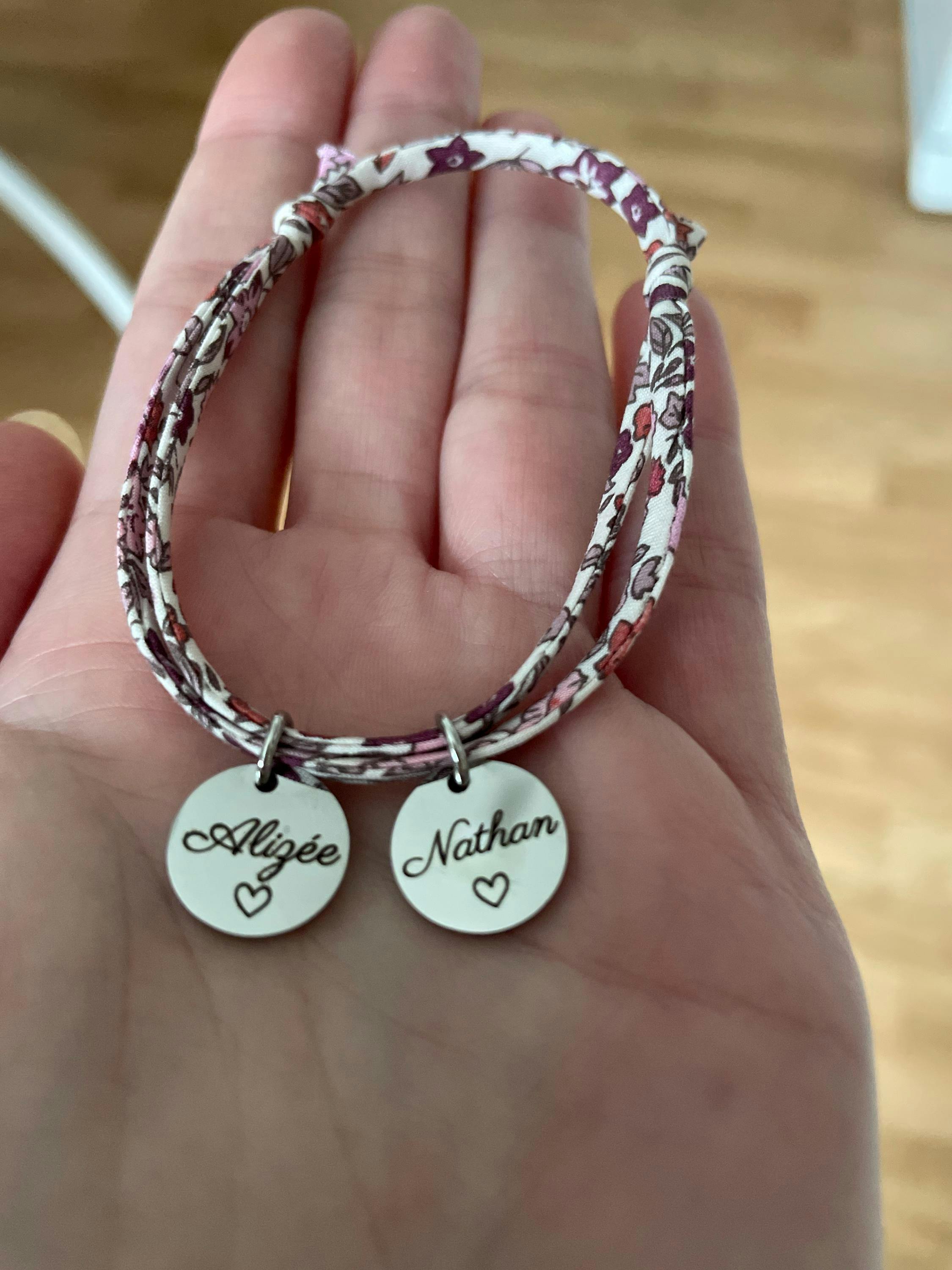 Apportez une touche florale et délicate à votre poignet avec ce bracelet personnalisé femme en tissu Liberty. Orné d’une médaille à graver en acier inoxydable, ce bracelet charms combine style, douceur et émotion. C’est le bijou idéal à offrir pour une occasion spéciale ou simplement pour faire plaisir.